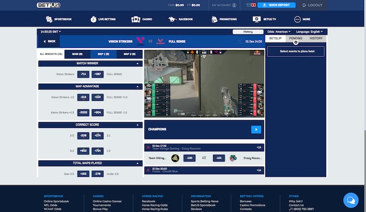 What about when you’re looking to place a live Valorant bet? In this case, we veer away from Bovada and instead recommend heading over to BetOnline or BetUS. The fact that both sites offer a large selection of live betting options on all Valorant matches, including moneyline, spread and over/under, is important. However, the main reason for recommending BetOnline and BetUS for live betting is the stunning and exceptionally intuitive live betting platforms they offer for all esports. This allows bets to be found and placed quickly – a vital requirement of any live esports betting site.